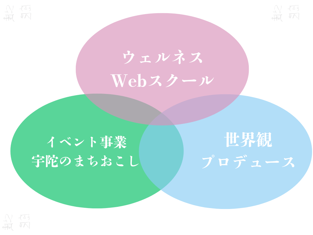 を統合し、一人一人が本来の力を取り戻し、明るく軽く温かい社会を創造していく事業です。